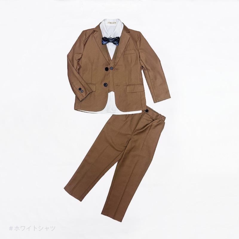 男の子 フォーマル キッズ 子供 ベージュ ピアノ発表会 結婚式 卒園式 入学式 卒業式 入園式 七五三 おしゃれ チェック 小学生 秋 冬 春 オールシーズン 上下セット 茶色 蝶ネクタイ ジュニア 舞台衣装 パーティー お誕生日会 初節句 100日祝 百日祝い 写真撮影 セットアップ