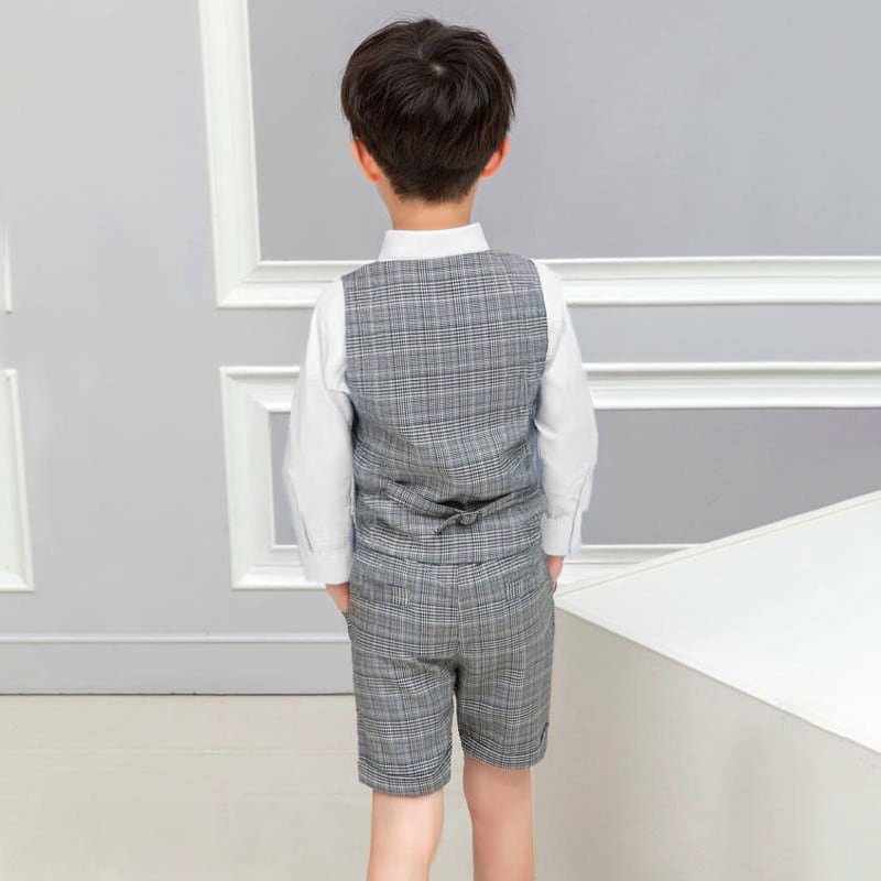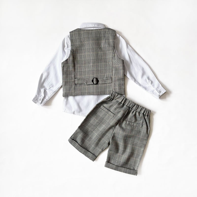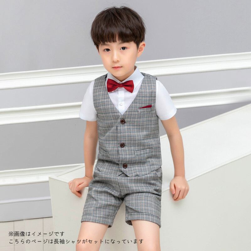 【送料無料】ホワイト長袖シャツ×グレンチェックフォーマルベスト4点セット【173】