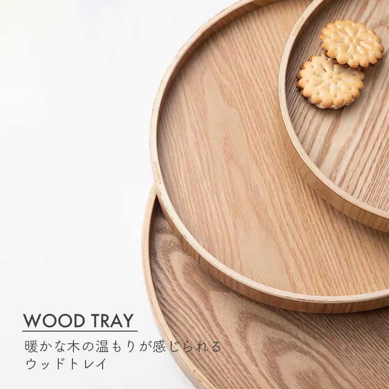 どこか懐かしさを感じる円形の木製トレイ。