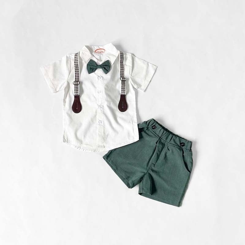 半ズボン・蝶ネクタイ・半袖シャツ・サスペンダーのお得な4点セット。