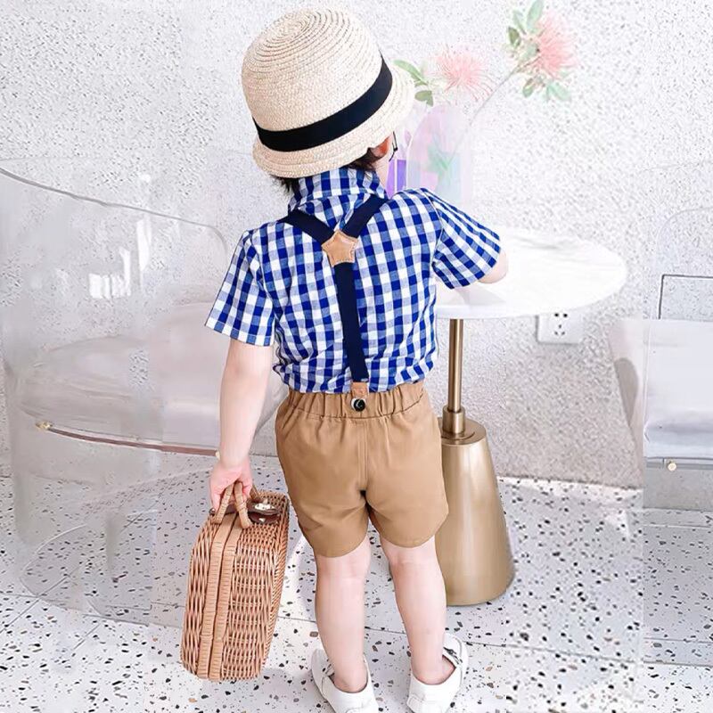 【送料無料】サマーギンガムチェック柄シャツサスペンダーフォーマル3点セット【210】