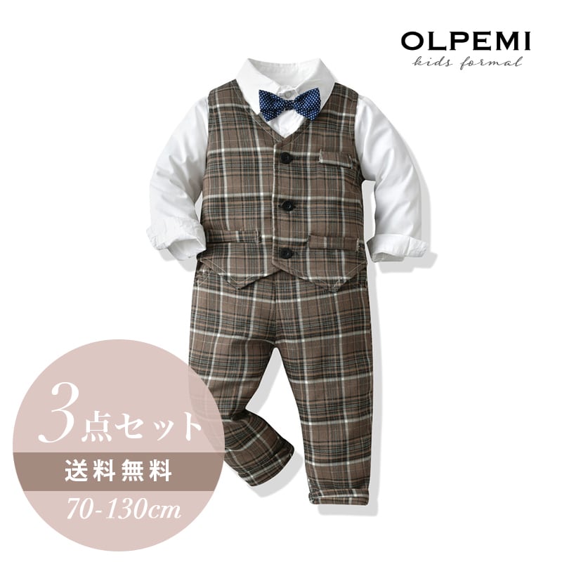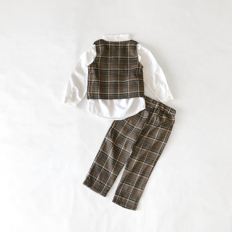 3点セット ブラウンチェック柄フォーマルベスト【224】