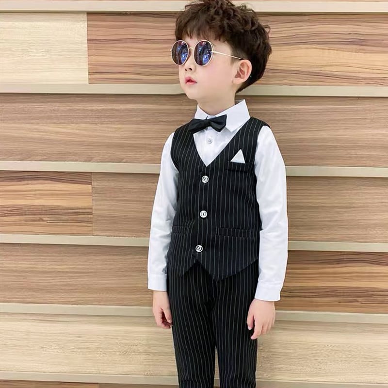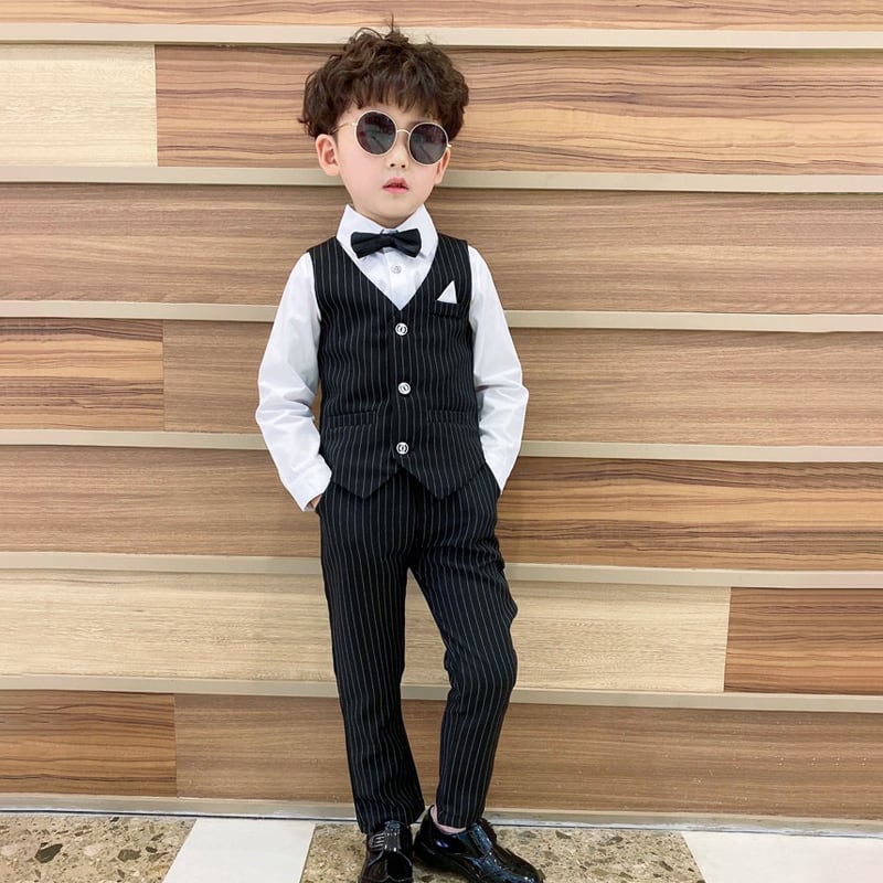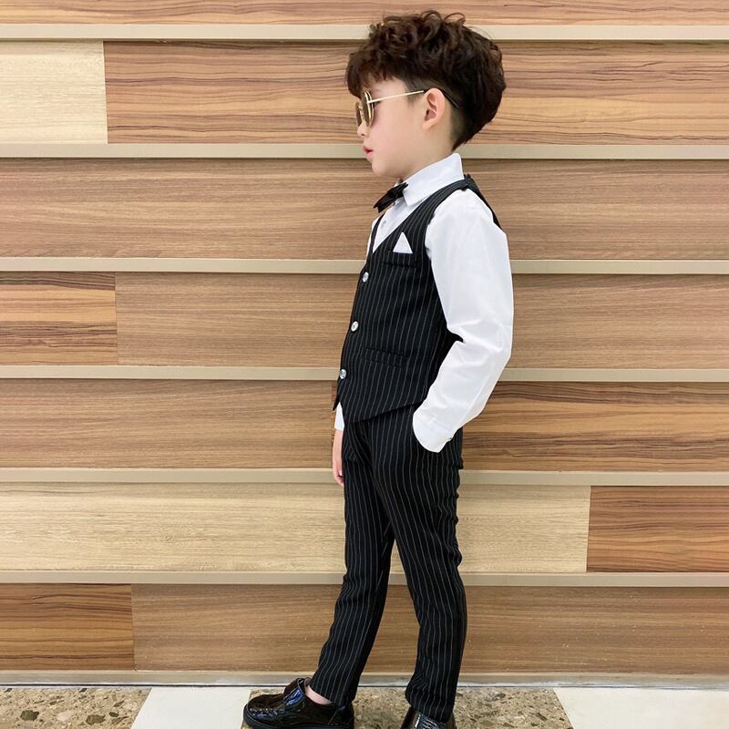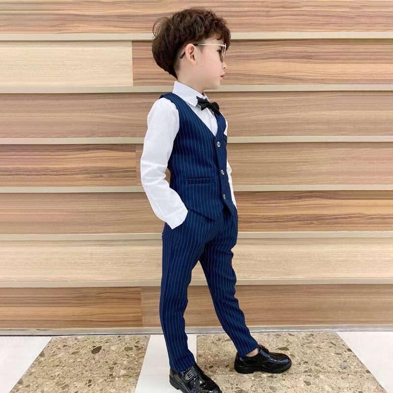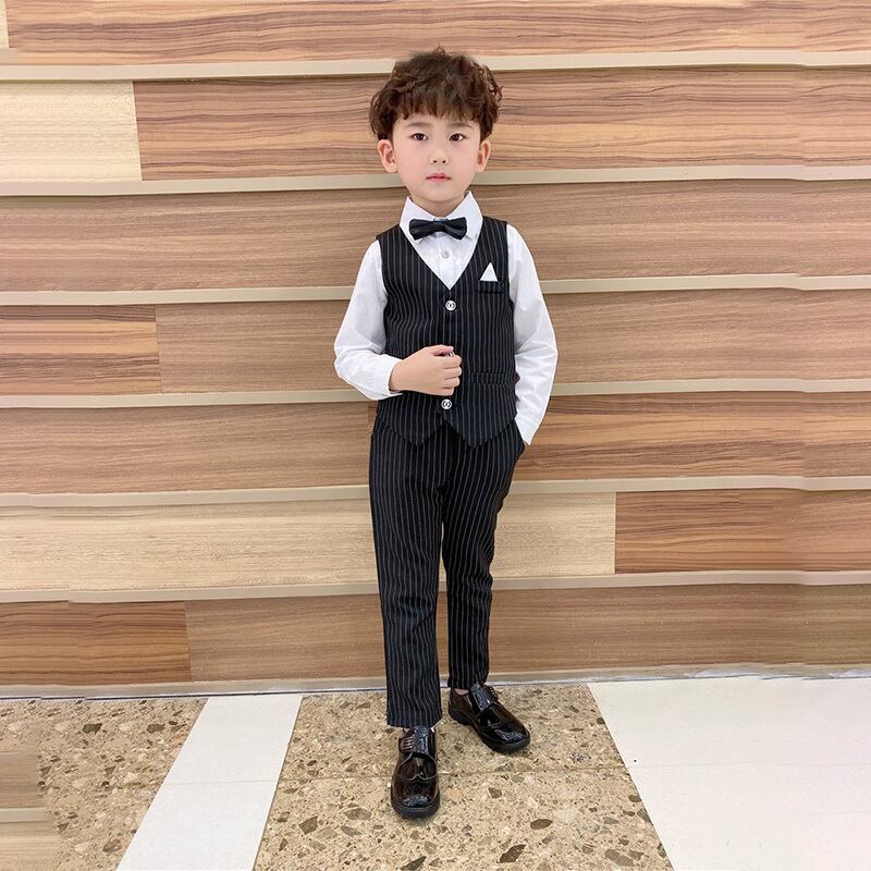 【送料無料】フォーマルベスト4点セット ストライプ×ホワイトシャツ【184】