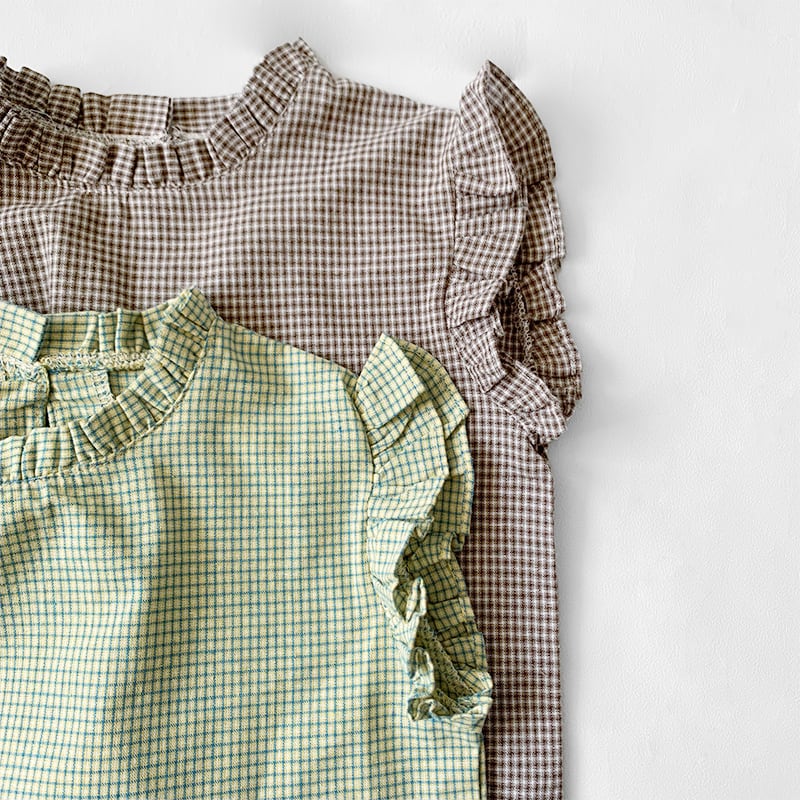 フリルデザインチェック柄シャツ【T154】