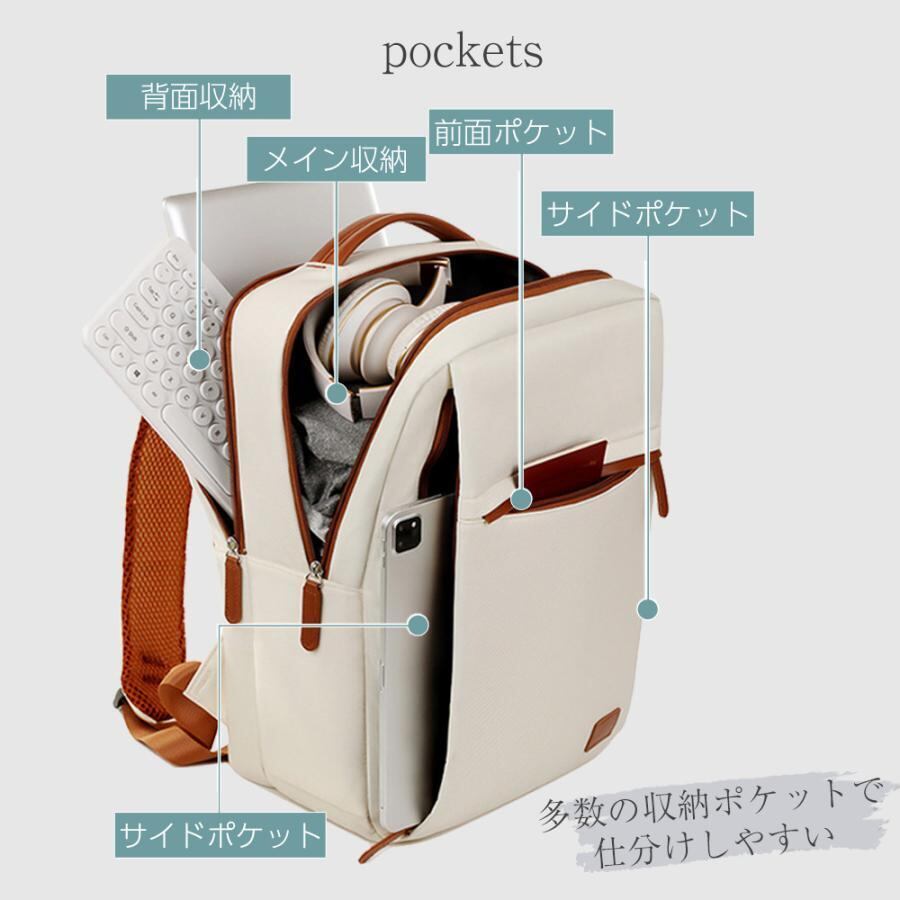 各種ポケットやセパレートが豊富でパソコンも収納しやすく通勤が通学にピッタリ。