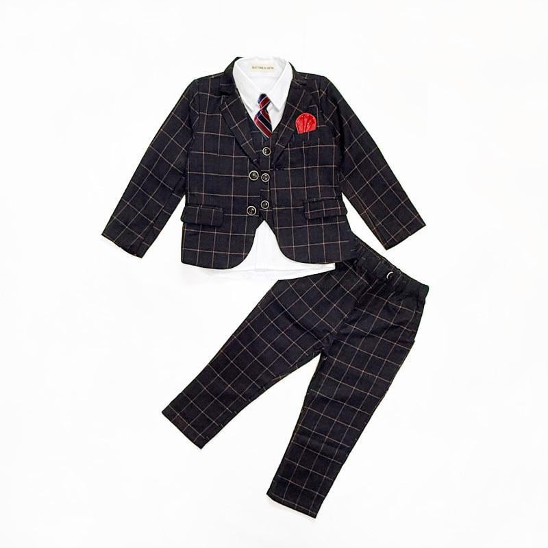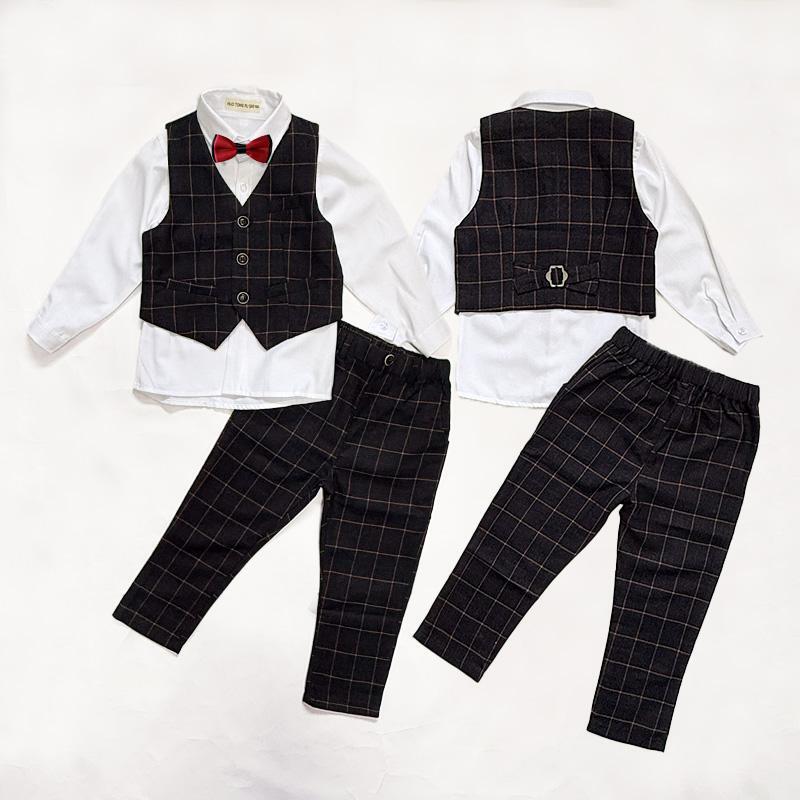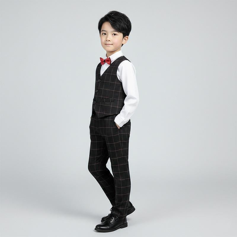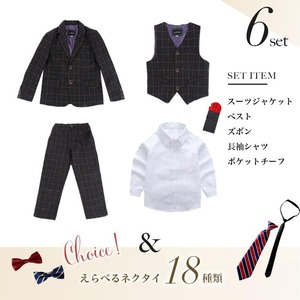 スーツジャケット・ベスト・ズボン・シャツ・ネクタイ・胸元チーフのお得な6点セット。