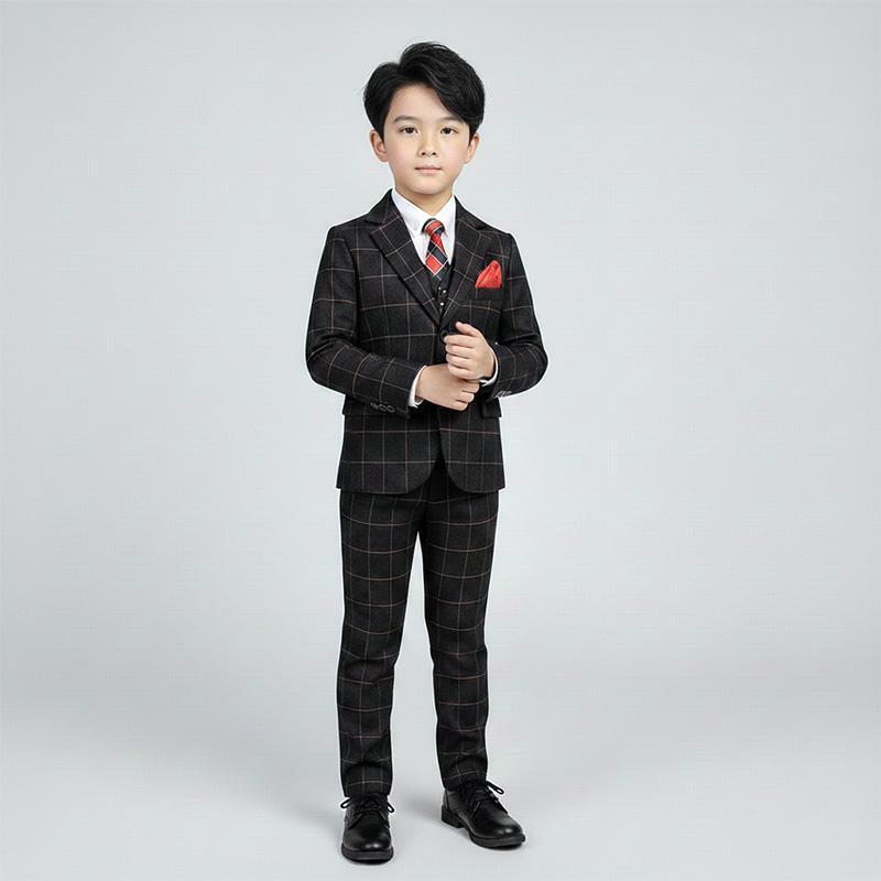 【送料無料】チャコールウィンドペンチェック柄フォーマルスーツ【F039】